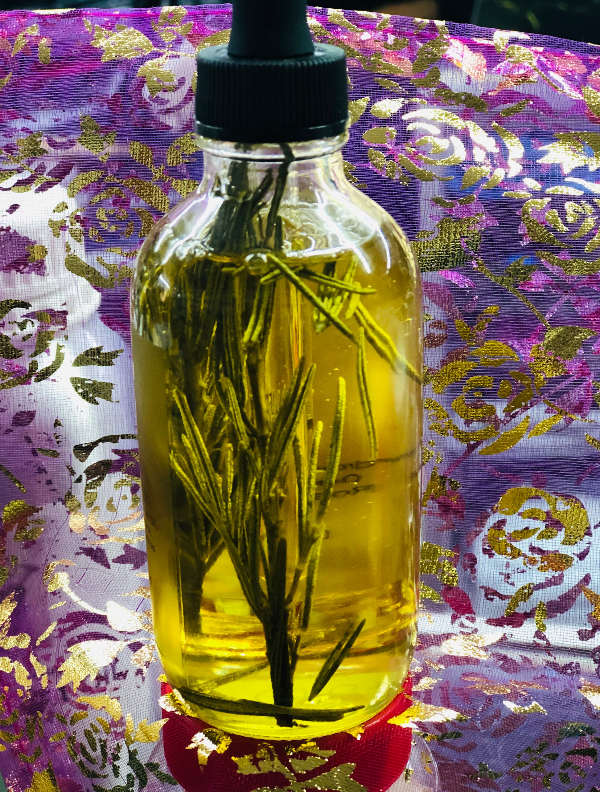 Rosemary, Eucalyptus and lavender soaked in Hydrogenated sweet almond oil, avocado oil and evening primrose oil.